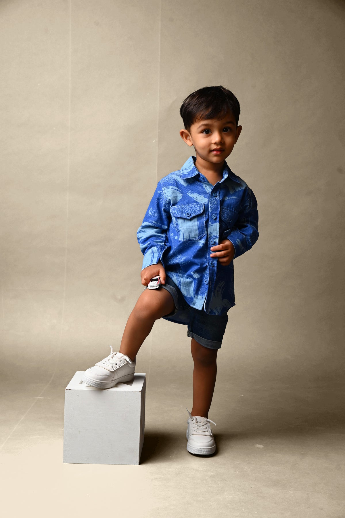 A smart-casual shirt with a creative edge — textured corduroy meets artistic brushstroke patterns for a look that’s both playful and polished.